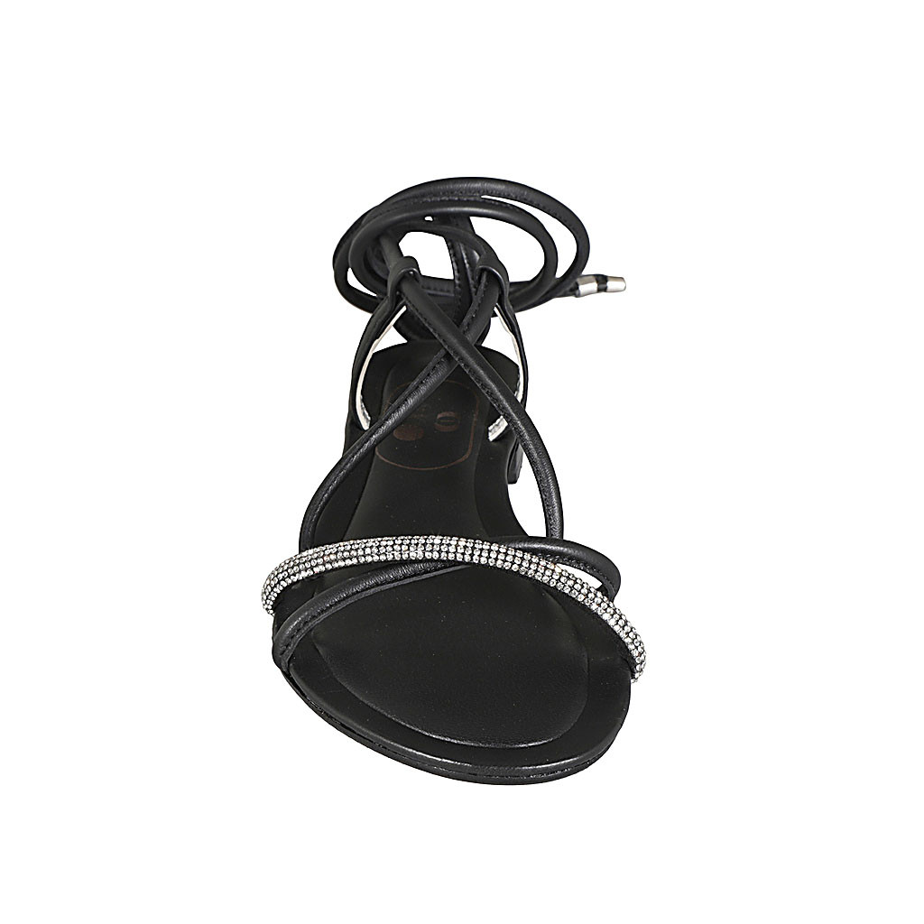Sandalia de dedo en estilo gladiador con estras para mujer en piel negra tacon 1