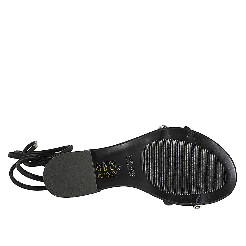 Sandalia de dedo en estilo gladiador con estras para mujer en piel negra tacon 1 - Tallas disponibles:  34