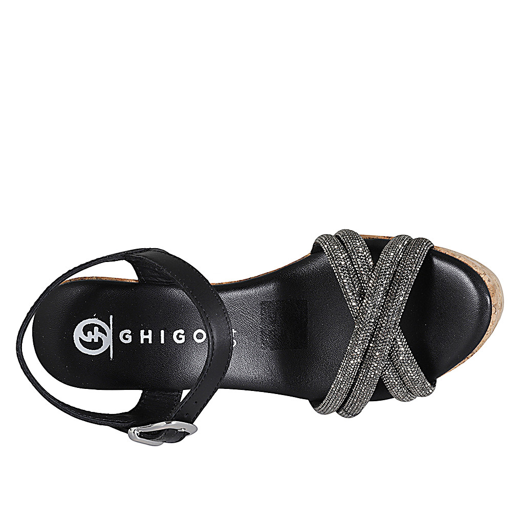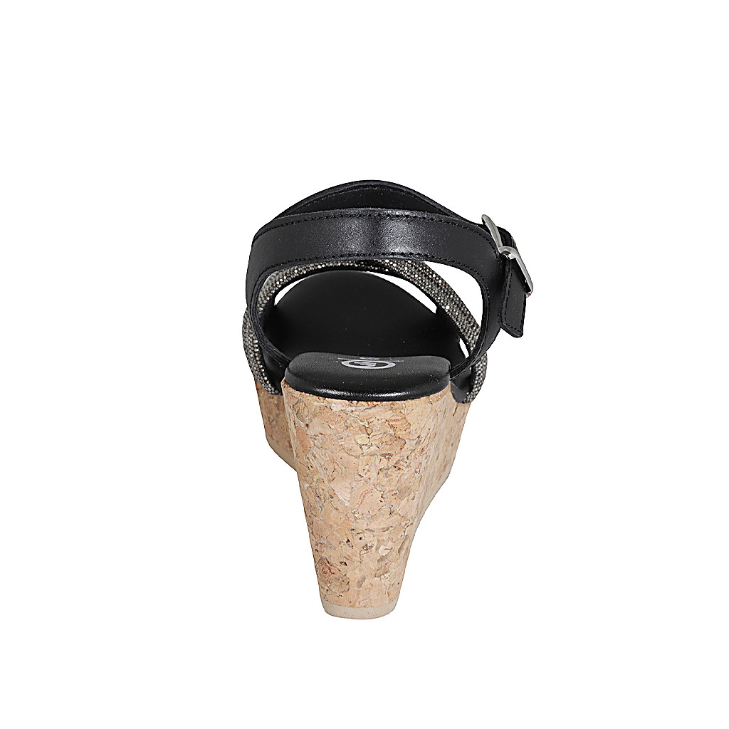 Sandalia para mujer con cinturon, plataforma y estras en piel negra cuña 9 - Tallas disponibles:  35