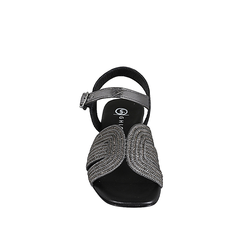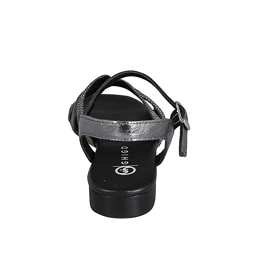 Sandalia para mujer en piel y tejido soga gris con cinturon, estras y tacon 2