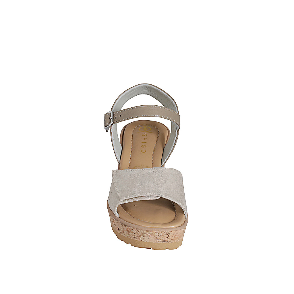 Sandalia para mujer con plataforma, cadena y flecos en piel rosa beis tacon 11