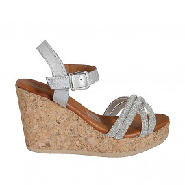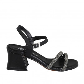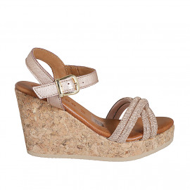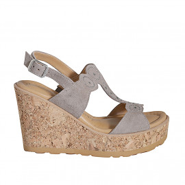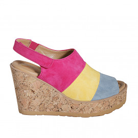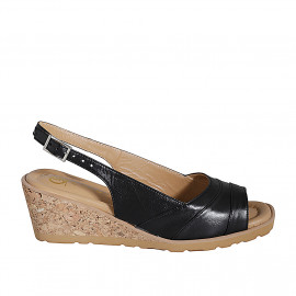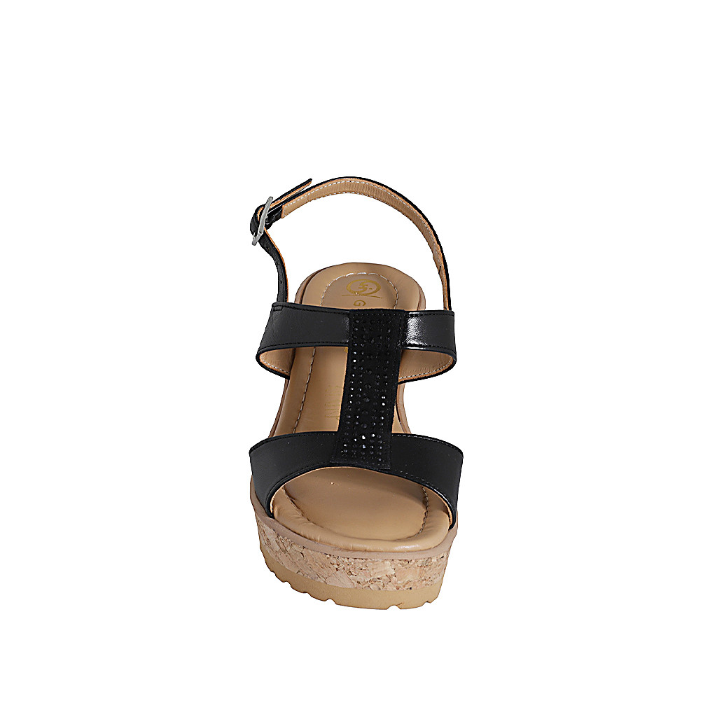 Sandalia para mujer en piel y gamuza negra con estras, plataforma y cuña 7 - Tallas disponibles:  31, 42, 44, 45