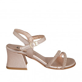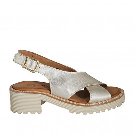 Sandalia para mujer en piel y gamuza negra con estras, plataforma y cuña 7