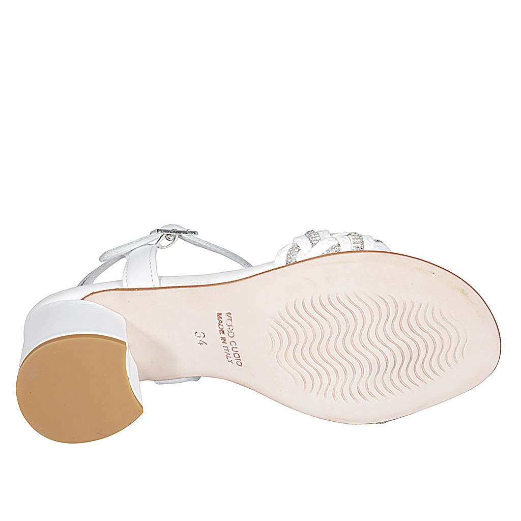 Sandalia con cinturon al tobillo y estrás para mujer en piel y rafia blanca tacon 5 - Tallas disponibles:  35