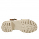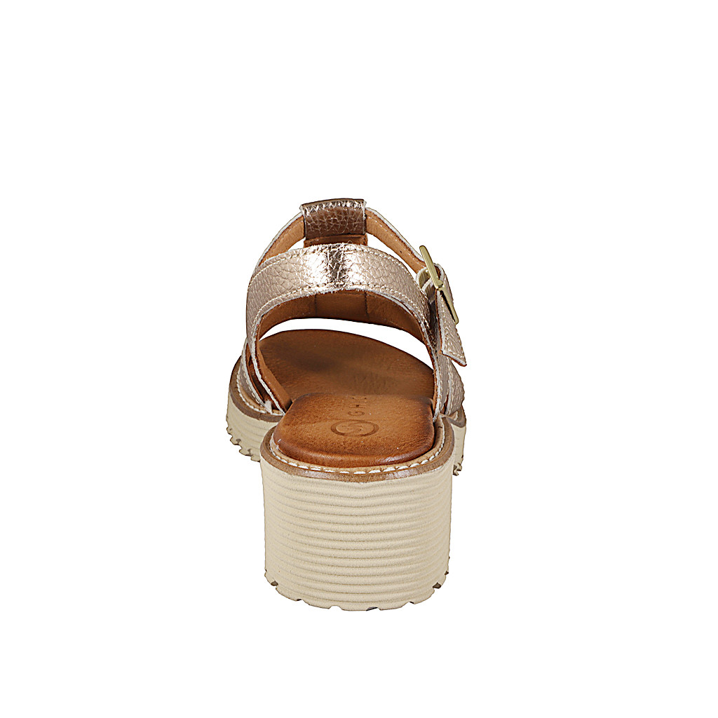 Sandalias deportivas para mujer con cinturón en piel laminada color platino con tacón en suela dentada 4