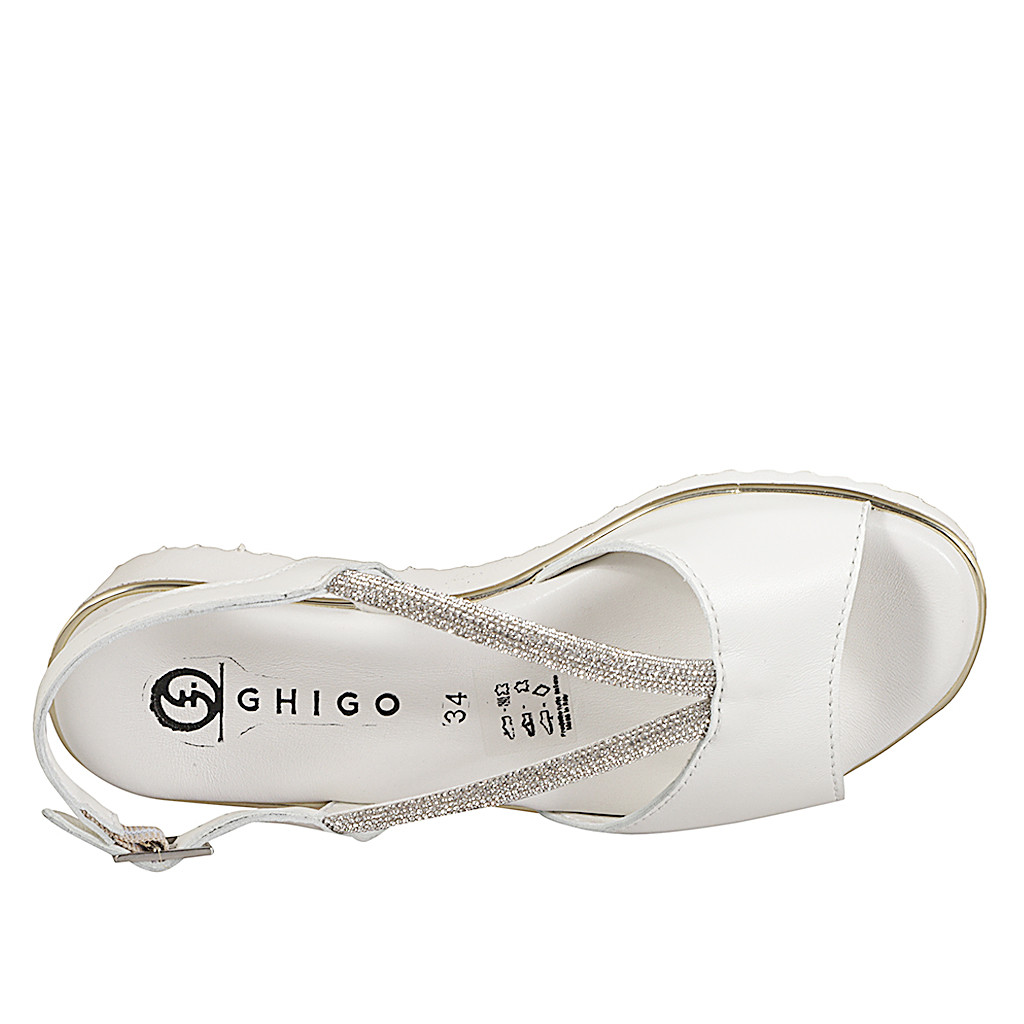 Sandalias para mujer en piel laminada color plateado y tiras con pedrería brillante plateada y...