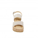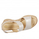 Sandalias para mujer con plantilla en memory foam y elástico, en gamuza laminada imprimida beis, plataforma y cuña alta 7