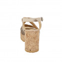 Sandalias para mujer con plantilla en memory foam en gamuza de color beis, gris y marron cuña de corcho alto 9
