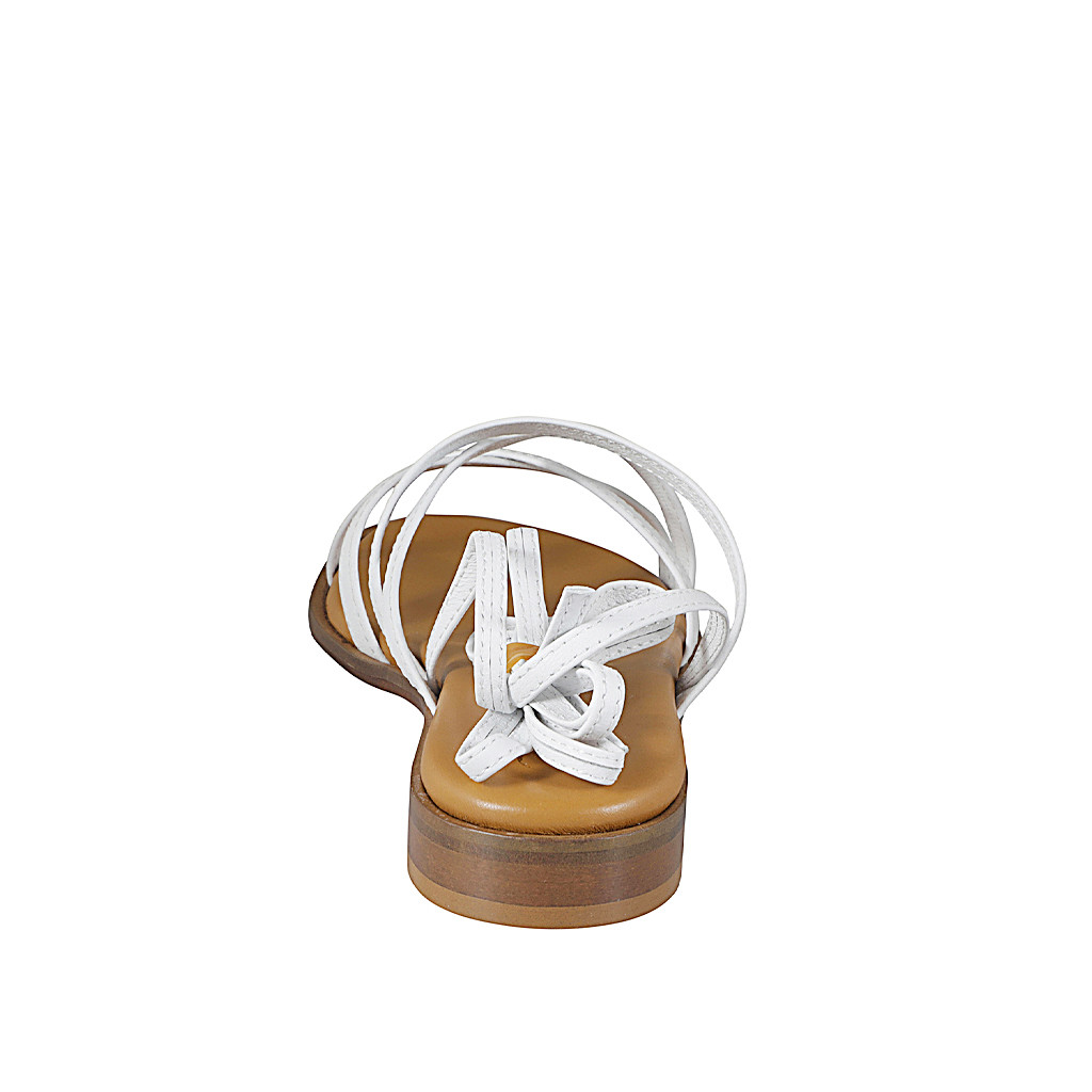Sandalias para mujer con tiras cruzadas y lazos a la esclava en piel de color blanco y tacón 2