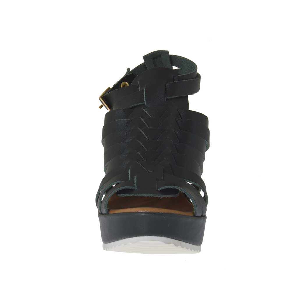 Sandalia para mujer con plataforma y cinturones entrelazados en piel verde oscuro cuña 9 - Tallas disponibles:  42