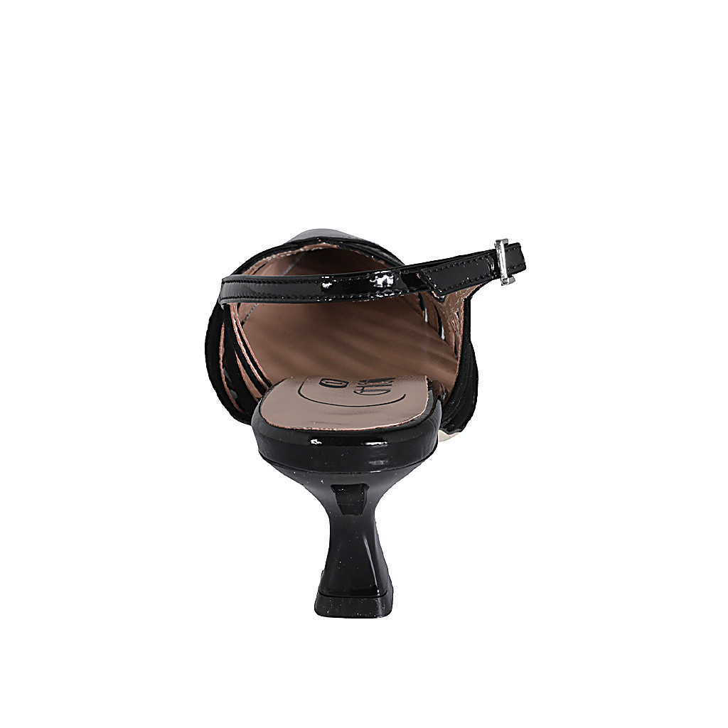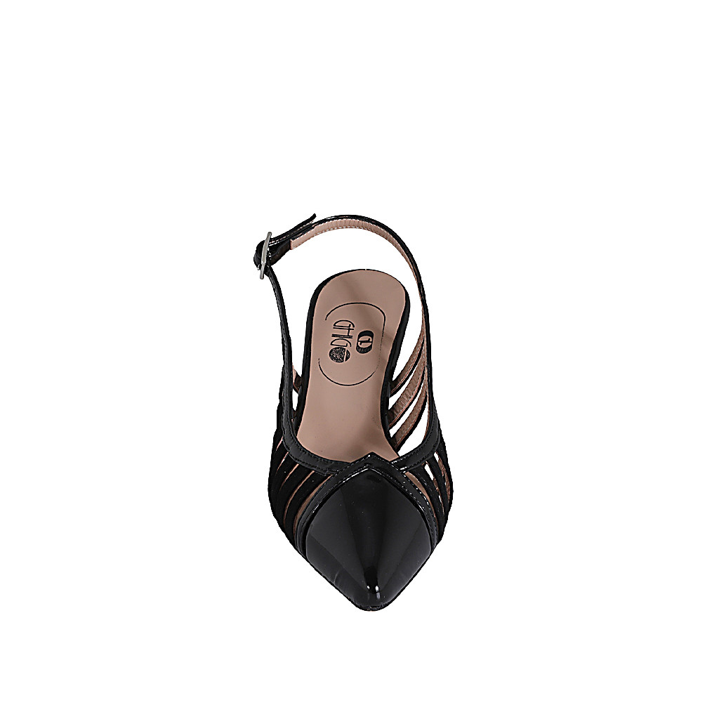 Zapato de salon puntiagudo para mujer en piel laminada plateada tacon 10