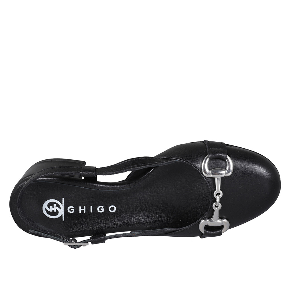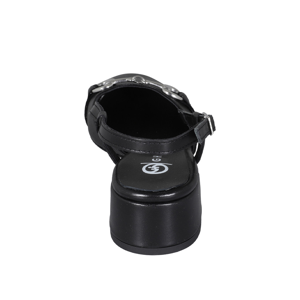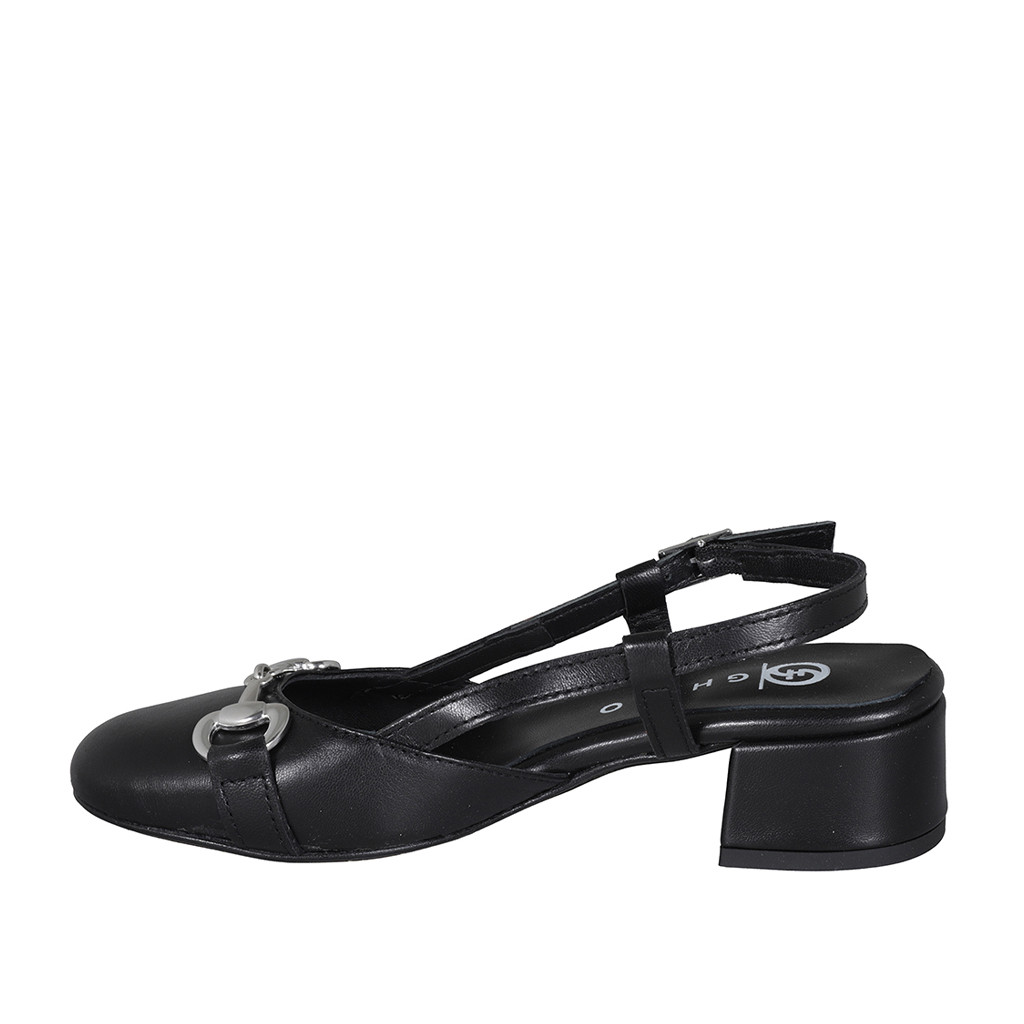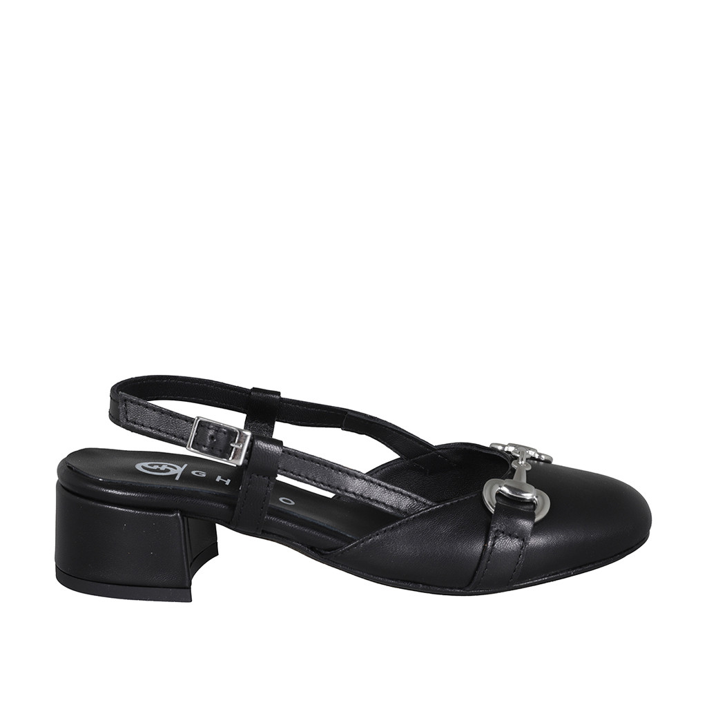 Zapato destalonado con punta redonda y accesorio para mujer en piel negra tacon 4