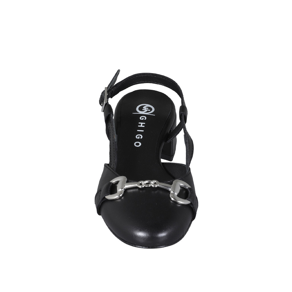 Zapato destalonado con punta redonda y accesorio para mujer en piel negra tacon 4 - Tallas disponibles:  32, 35
