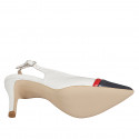 Slingback a punta para mujer en piel blanca, azul y roja con puntera tacon 7