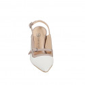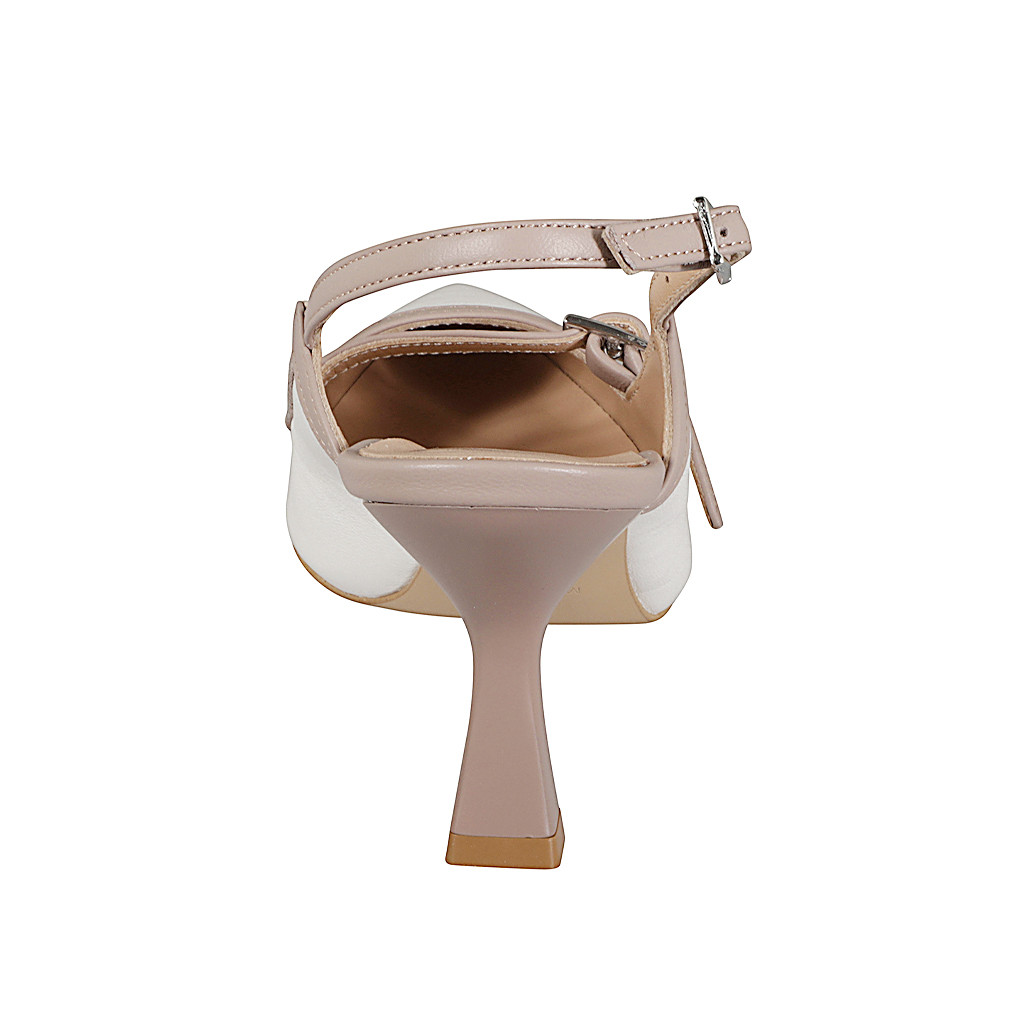 Slingback Mary Jane a punta en piel blanca y nude con correa tacon 7
