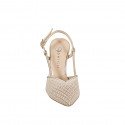 Zapato a punta destalonado para mujer con cinturón en piel color polvos rosado claro, tacón 2