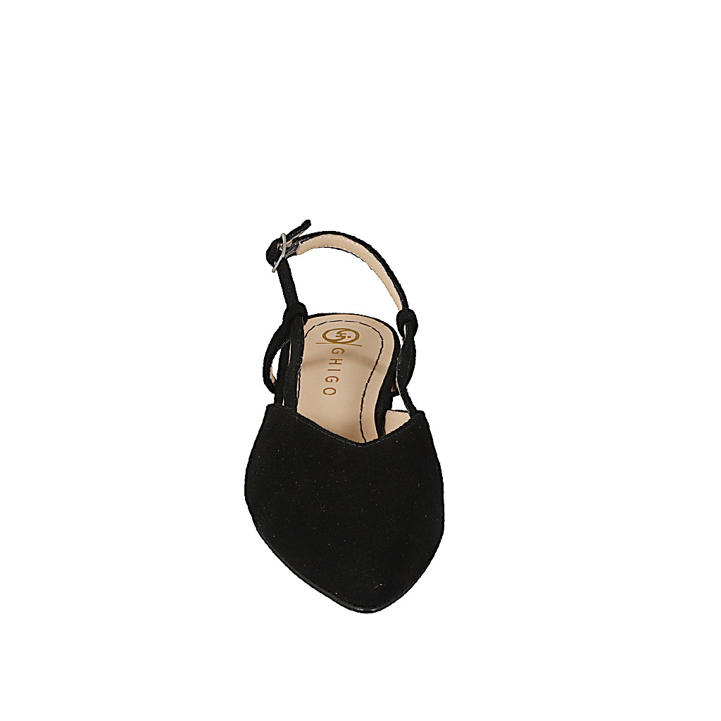 Zapato destalonado a punta para mujer sin adornos en gamuza de color negro con tacón 2