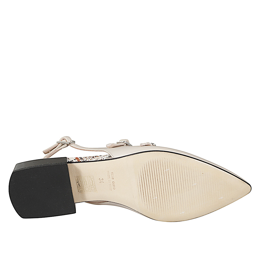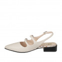 Zapato destalonado a punta modelo Mary Jane con doble cinturón en piel de color beis claro y con tacón 3