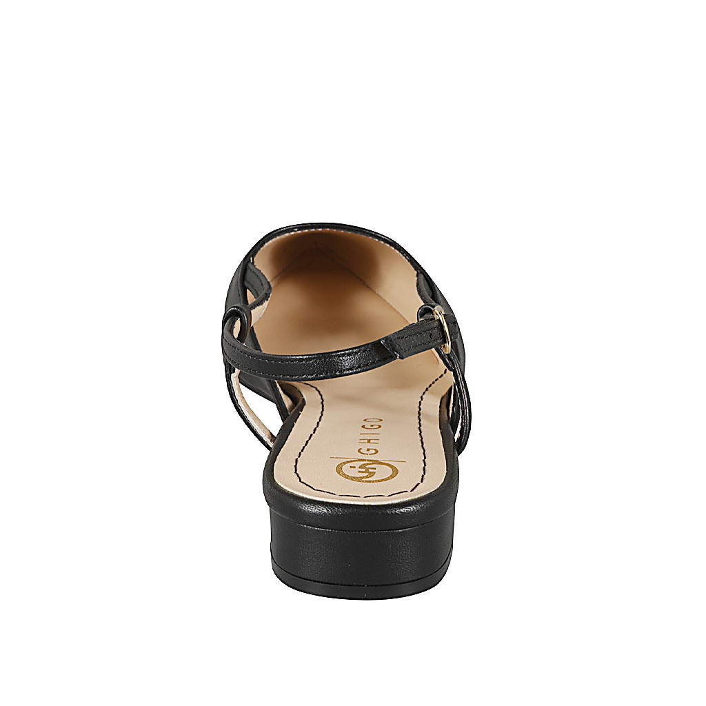 Zapato destalonado a punta para mujer sin adornos en piel de color negro con tacón 2