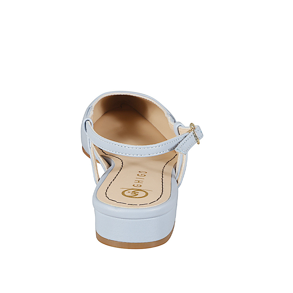 Zapato destalonado a punta para mujer sin adornos en piel de color azul claro con tacón 2