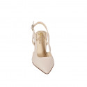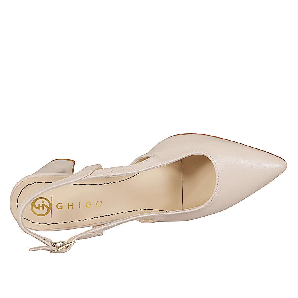 Zapato destalonado a punta para mujer sin adornos en piel de color nude con tacón ancho 7