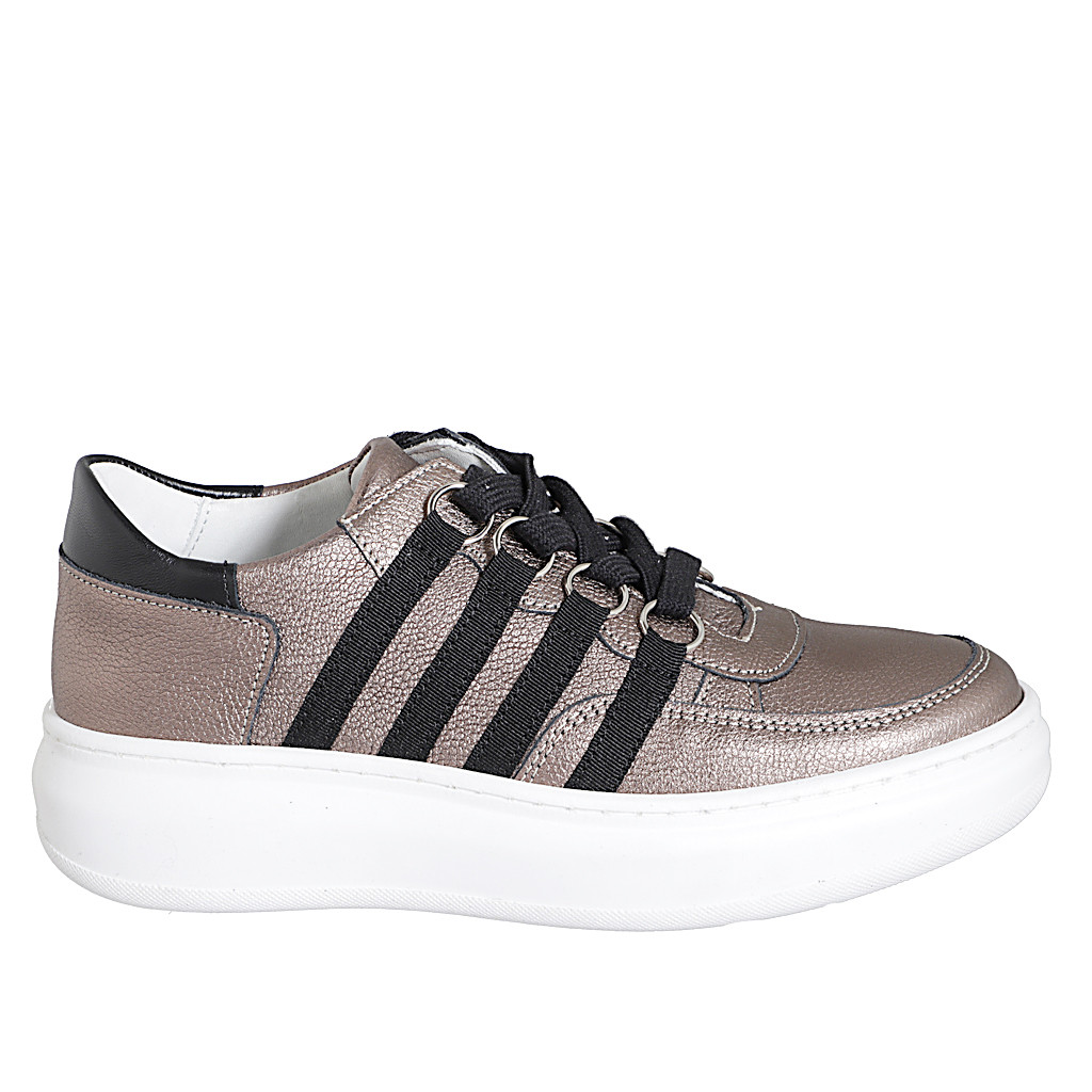 Sneaker para mujer con cordones y plantilla extraible de piel martillada laminada en color plomo y piel negra cuña 4 - Tallas disponibles:  32, 42