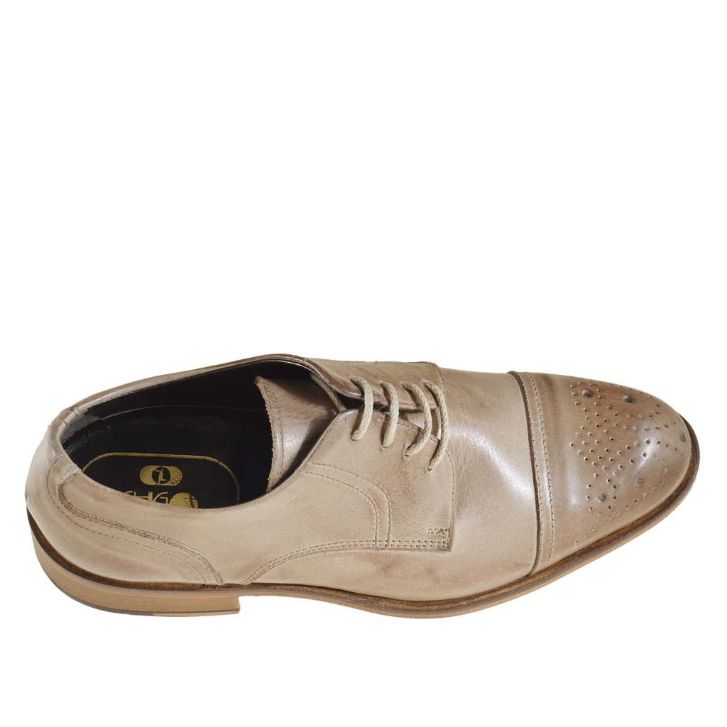 Zapato derby para hombre con cordones y puntera floreal en piel beis
