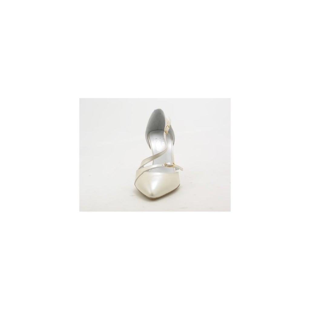 Zapato abierto para mujer con cinturones en piel perlada color marfil tacon 9