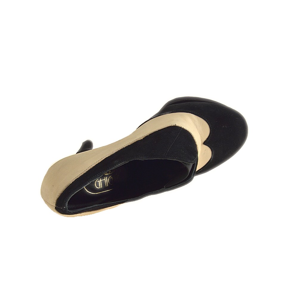 Zapato cerrado con plataforma en gamuza color negro y beis tacon 15