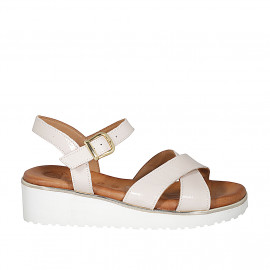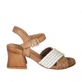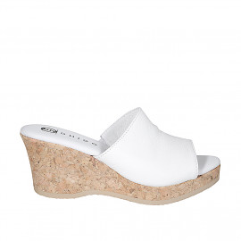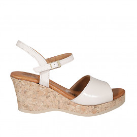 Zapato abierto para mujer en piel blanca y gamuza estampada óptical tacon 9 - Tallas disponibles:  42