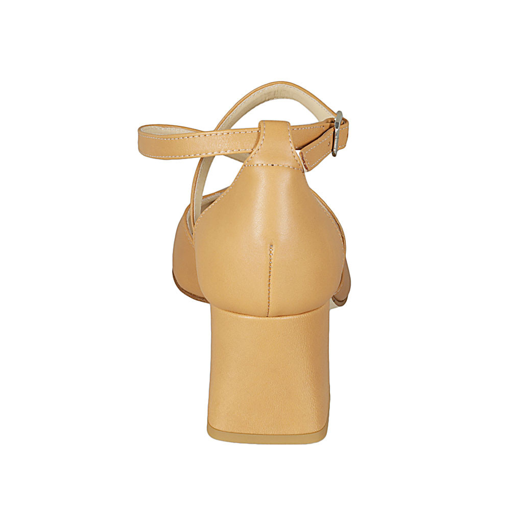 Zapato abierto puntiagudo para mujer con cinturon cruzado en piel cognac tacon 6 - Tallas disponibles:  44