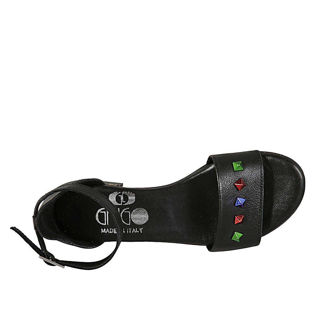 Bailerina con punta redonda para mujer en gamuza negra imprimida mosaico multicolor tacon 2
