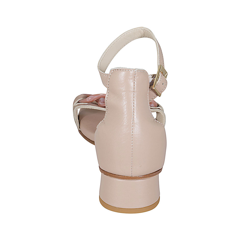 Zapato abierto para mujer con cinturon y cadena en piel nude tacon 3