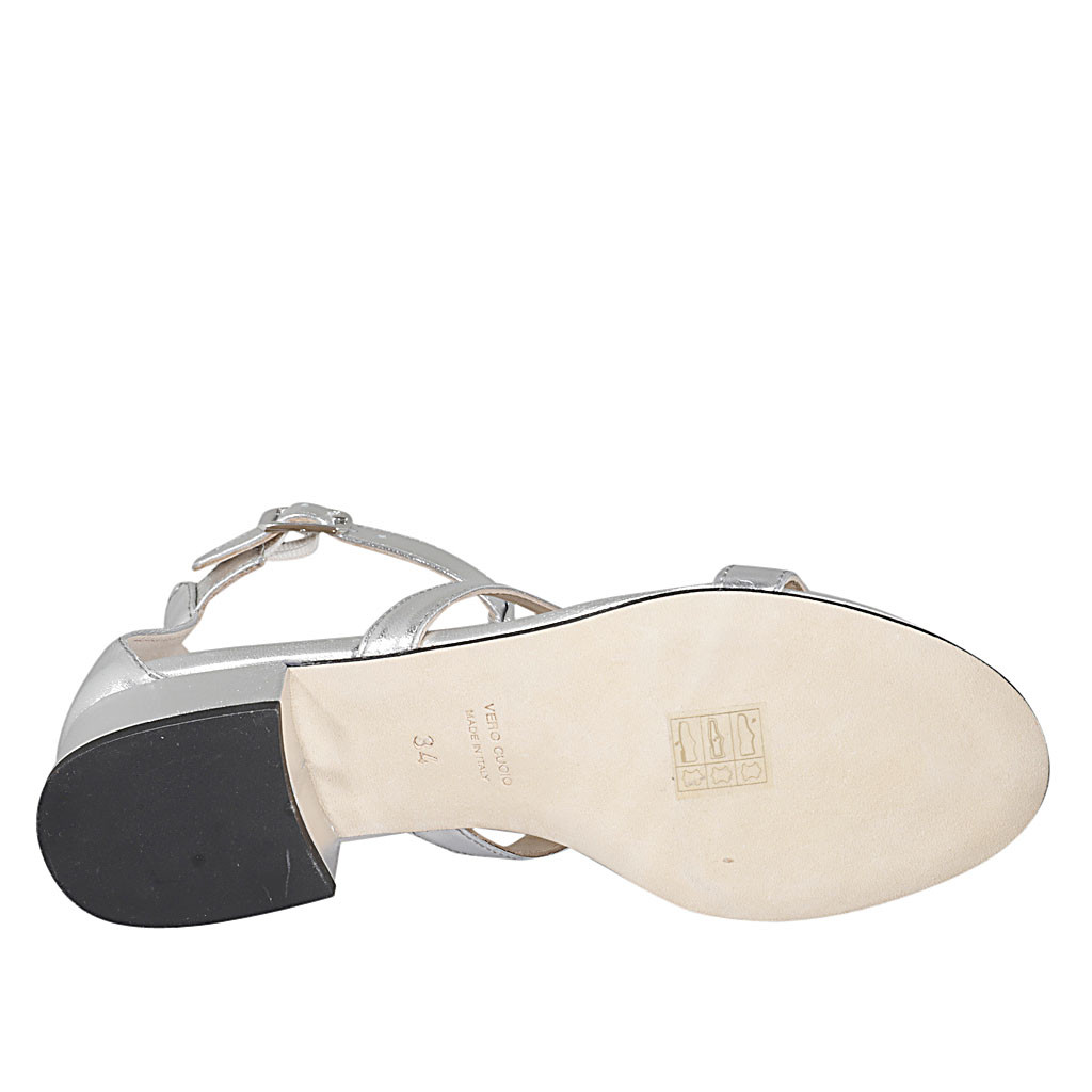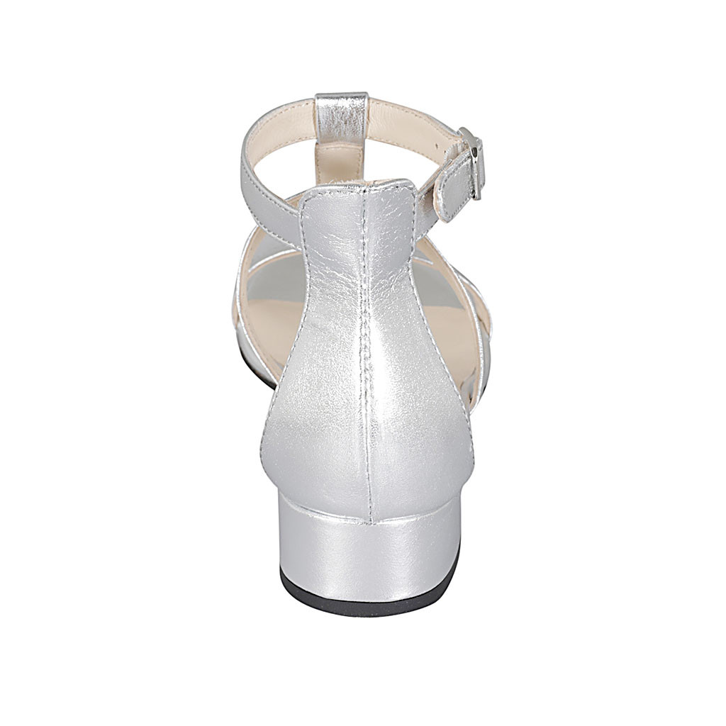 Zapato abierto con cinturon para mujer en piel laminada plateada tacon 3 - Tallas disponibles:  32, 42