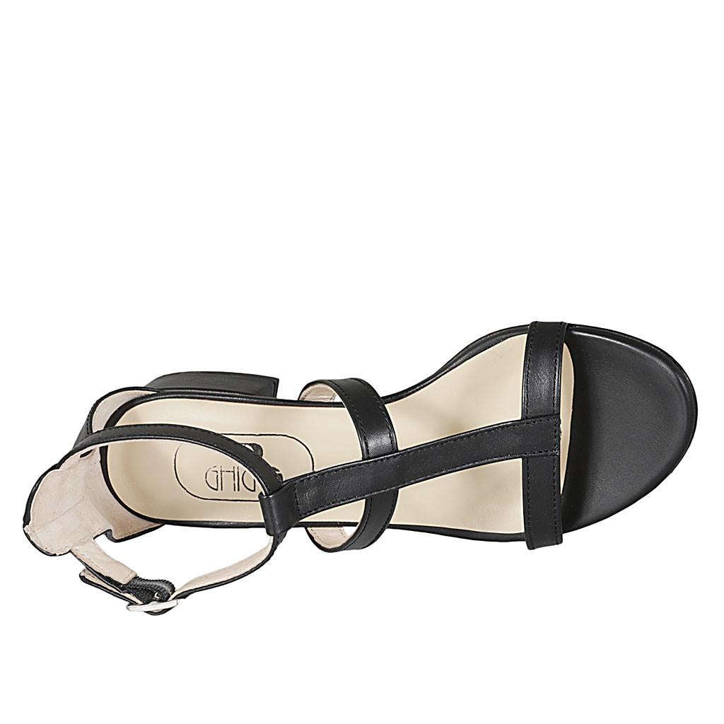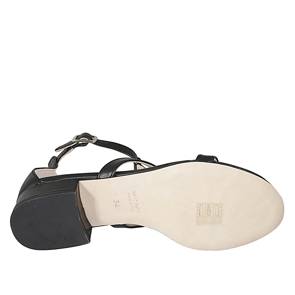 Zapato abierto para mujer con cinturon en piel negra tacon 3 - Tallas disponibles:  32