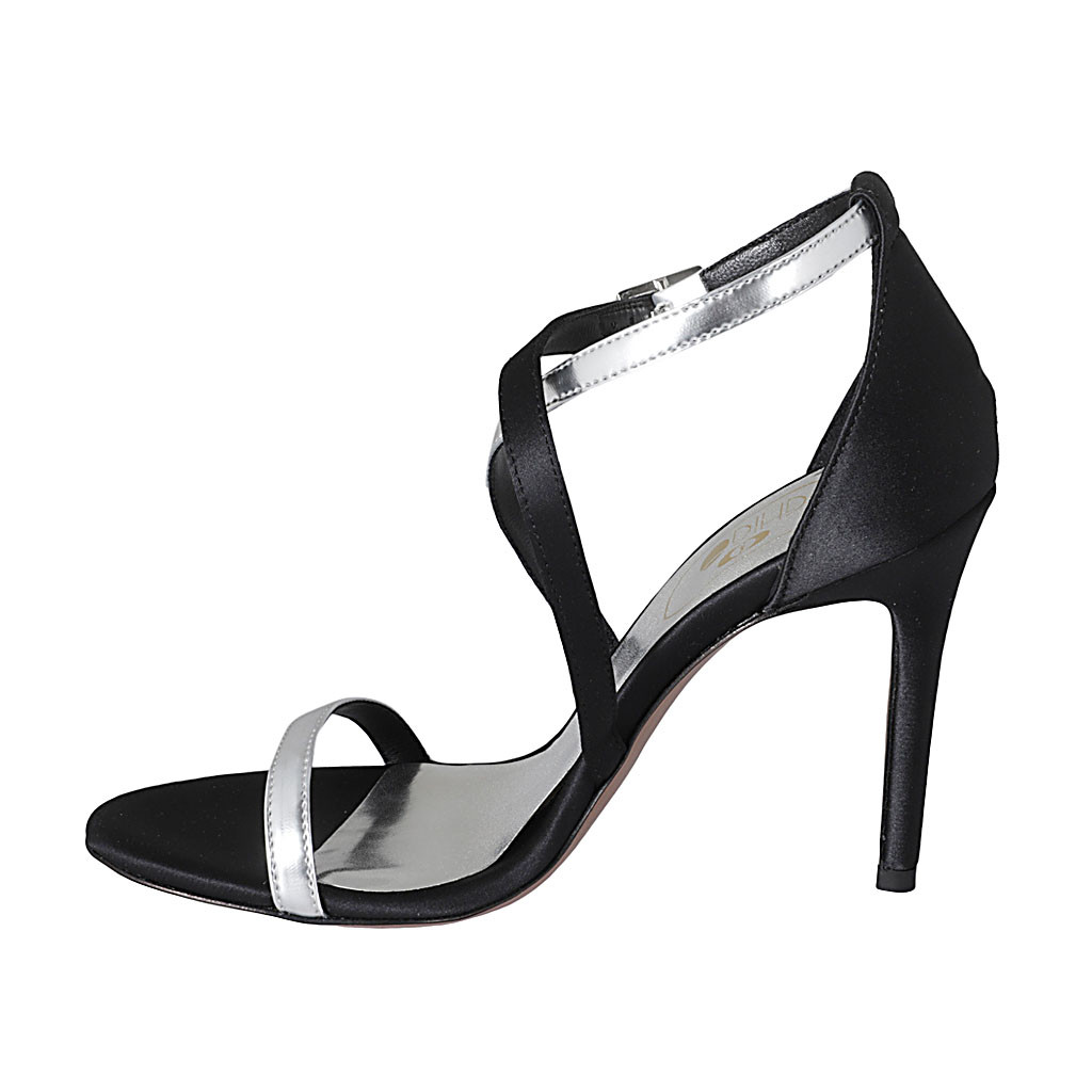 Sandalia para mujer con cinturon en piel blanca imprimida mosaico multicolor tacon 2