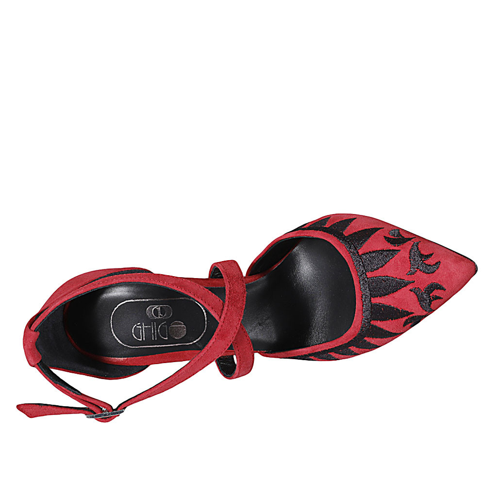 Zapato abierto puntiagudo para mujer con cinturon cruzado en piel negra tacon 8