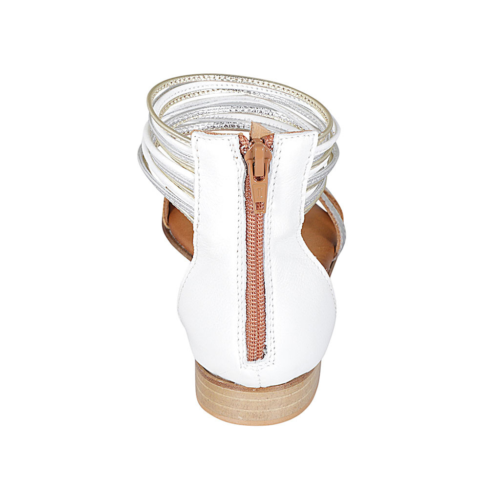 Zapato abierto con cremallera para mujer en piel blanca y piel laminada plateada y platino tacon 2