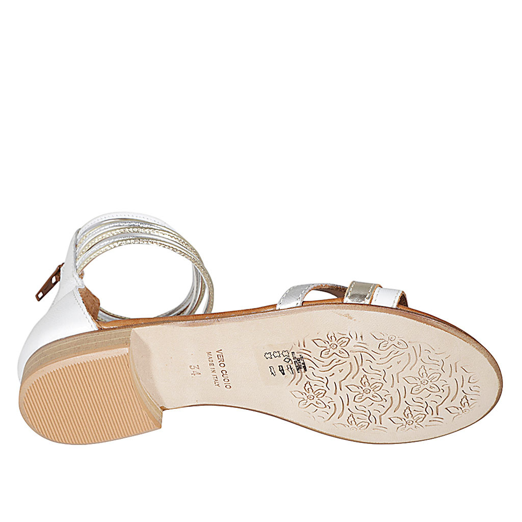 Zapato abierto con cremallera para mujer en piel blanca y piel laminada plateada y platino tacon 2 - Tallas disponibles:  32
