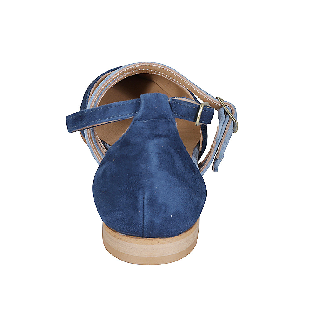 Zapato abierto puntiagudo para mujer con correas en gamuza azul y azul claro tacon 1 - Tallas disponibles:  35