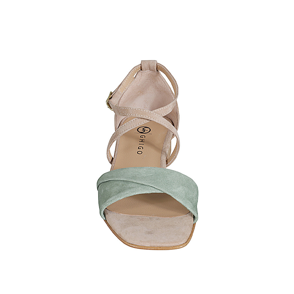 Zapato abierto con cinturon para mujer en gamuza beis y verde tacon 2 - Tallas disponibles:  32, 33, 35, 43