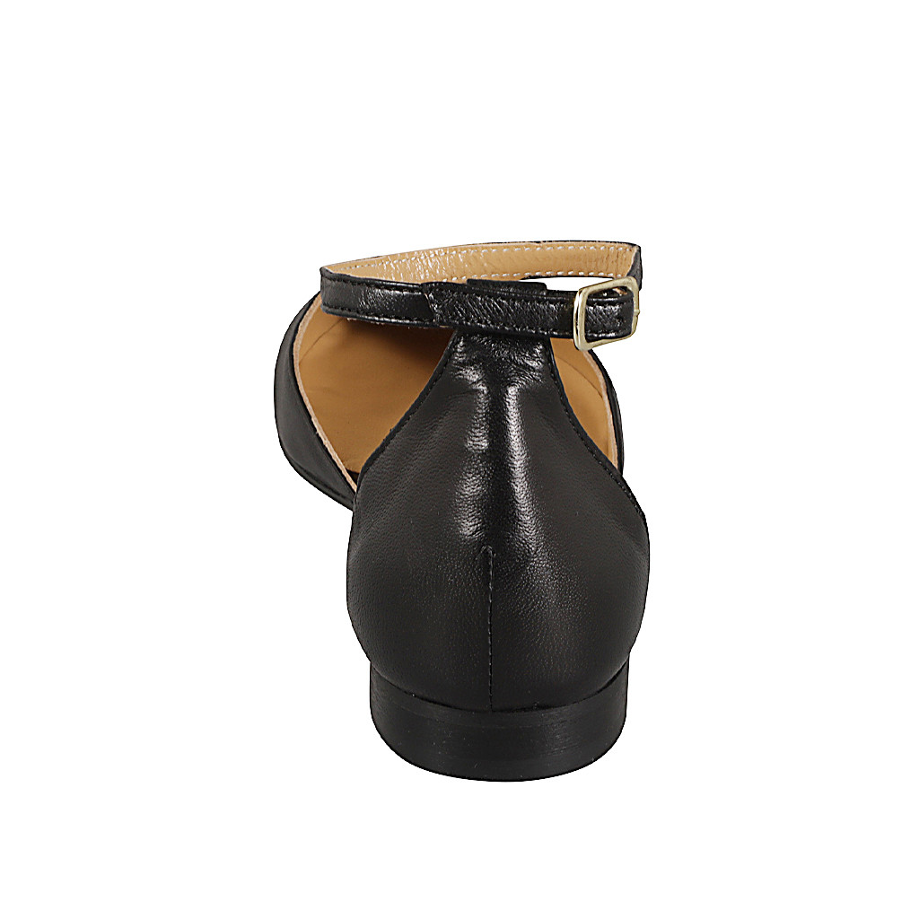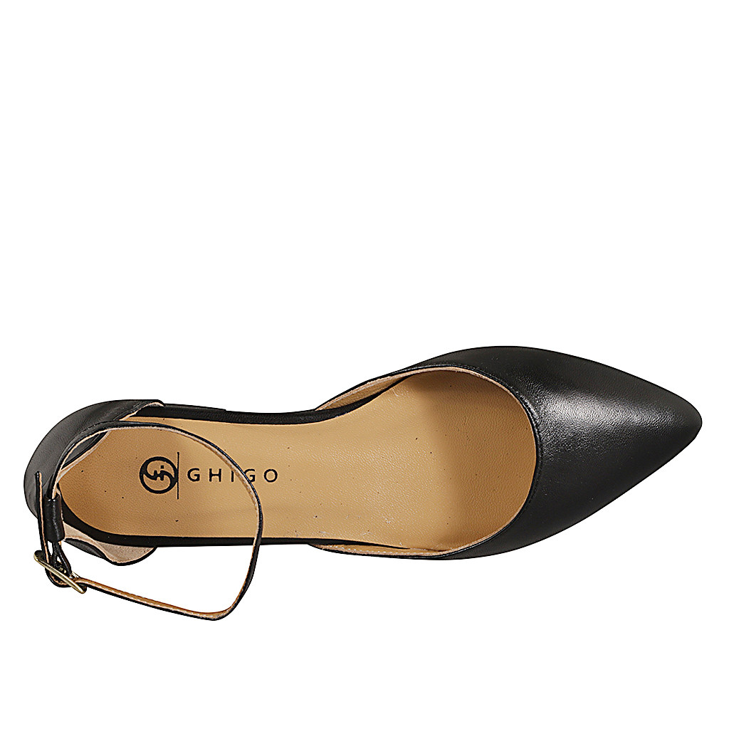Zapato abierto puntiagudo con cinturón al tobillo en piel color negro con tacón 2