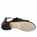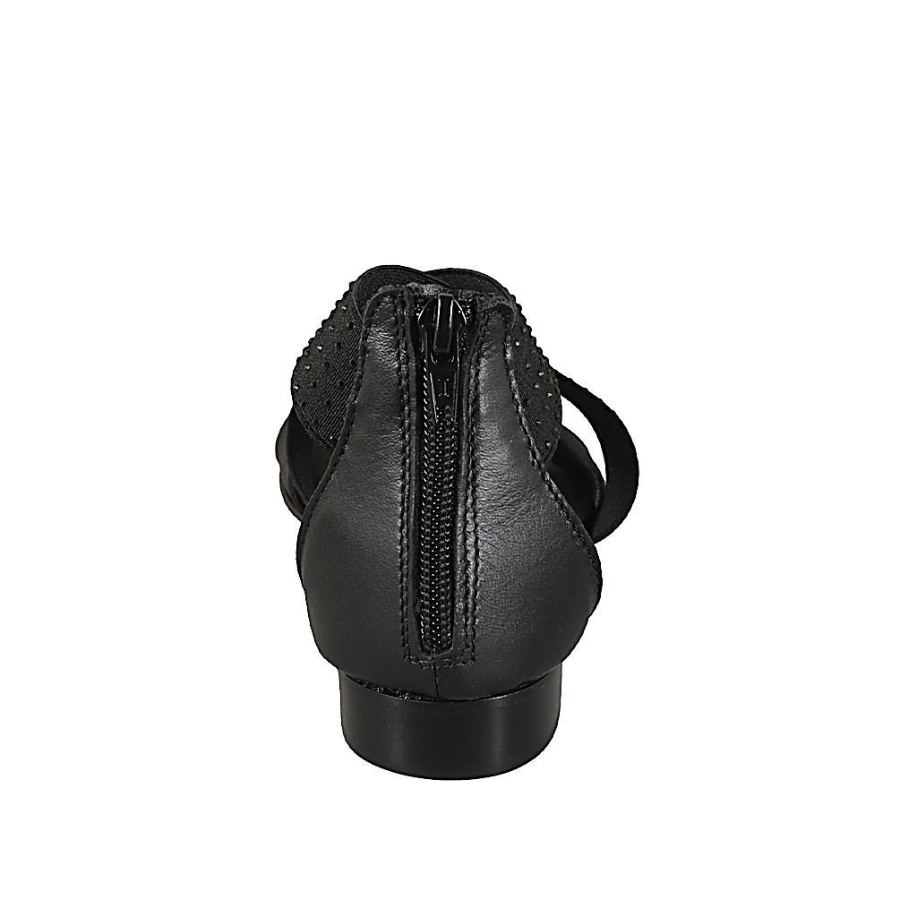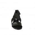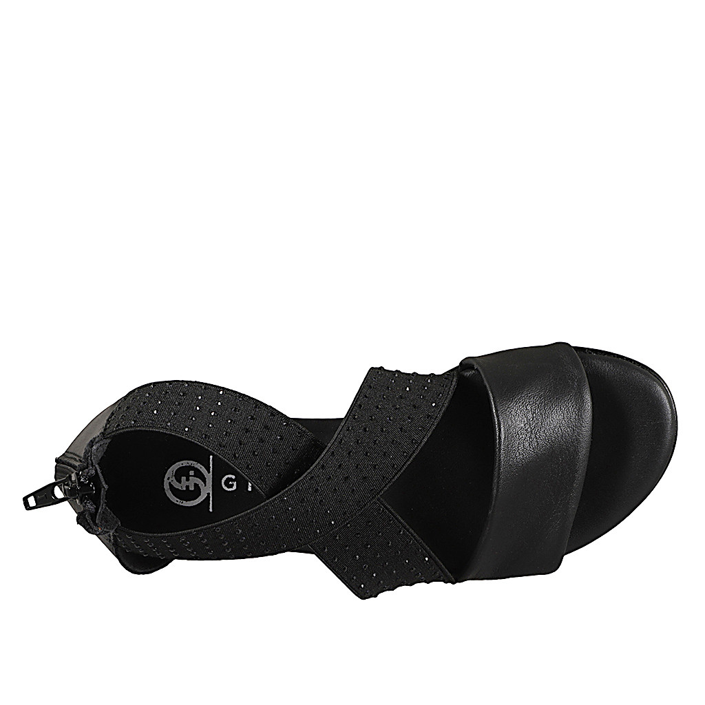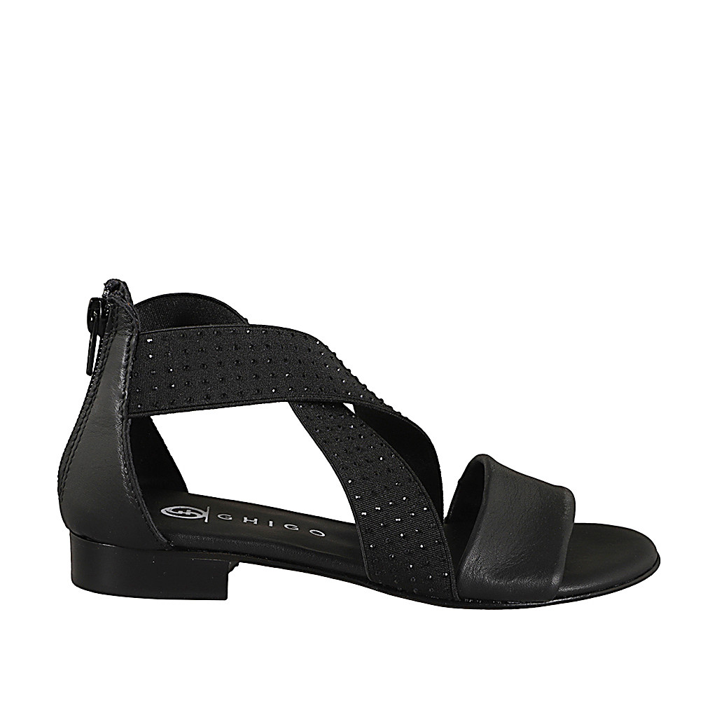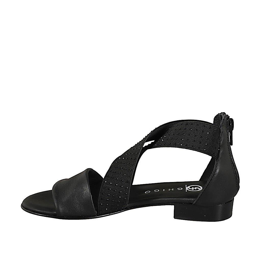 Zapatos abiertos para mujer con cremalleraen piel de color negro y bandas cruzadas de elástico con pedrería brillante y tacón 2