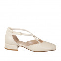 Zapato abierto para mujer con punta cuadrada y cinturón cruzado en piel de color marfil tacón 3