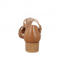 Zapato abierto estilo cangrejeras con cinturón a T en piel de color cognac y con tacón 4