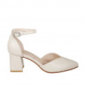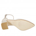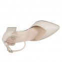 Zapato abierto a punta para mujer con cinturón al tobillo en piel de color beis claro con tacón ancho 6