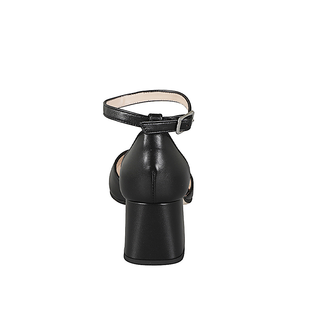 Zapato abierto a punta redonda para mujer con cinturón al tobillo en piel de color negro con tacón ancho 5