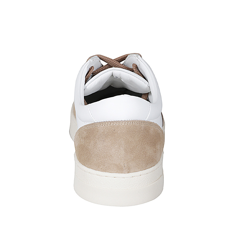 Zapato para mujer con cordones y plantilla extraible en piel blanca y gamuza beis cuña 3 - Tallas disponibles:  42, 44