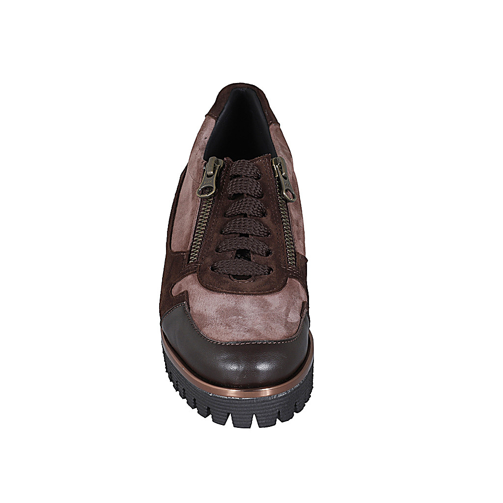 Zapato abierto para mujer en tejido denim blanco y piel cognac con cinturon cruzado tacon 10