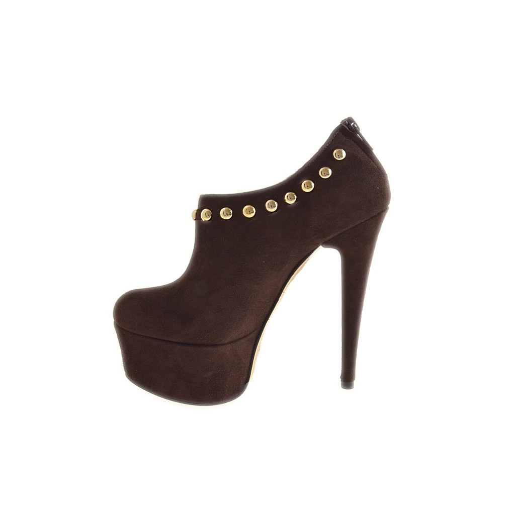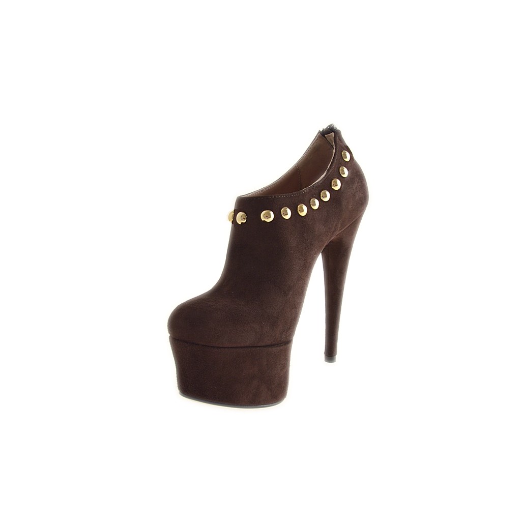 Zapato cerrado con plataforma, tachuelas y cremallera en gamuza color marrón tacon 15 - Tallas disponibles:  42